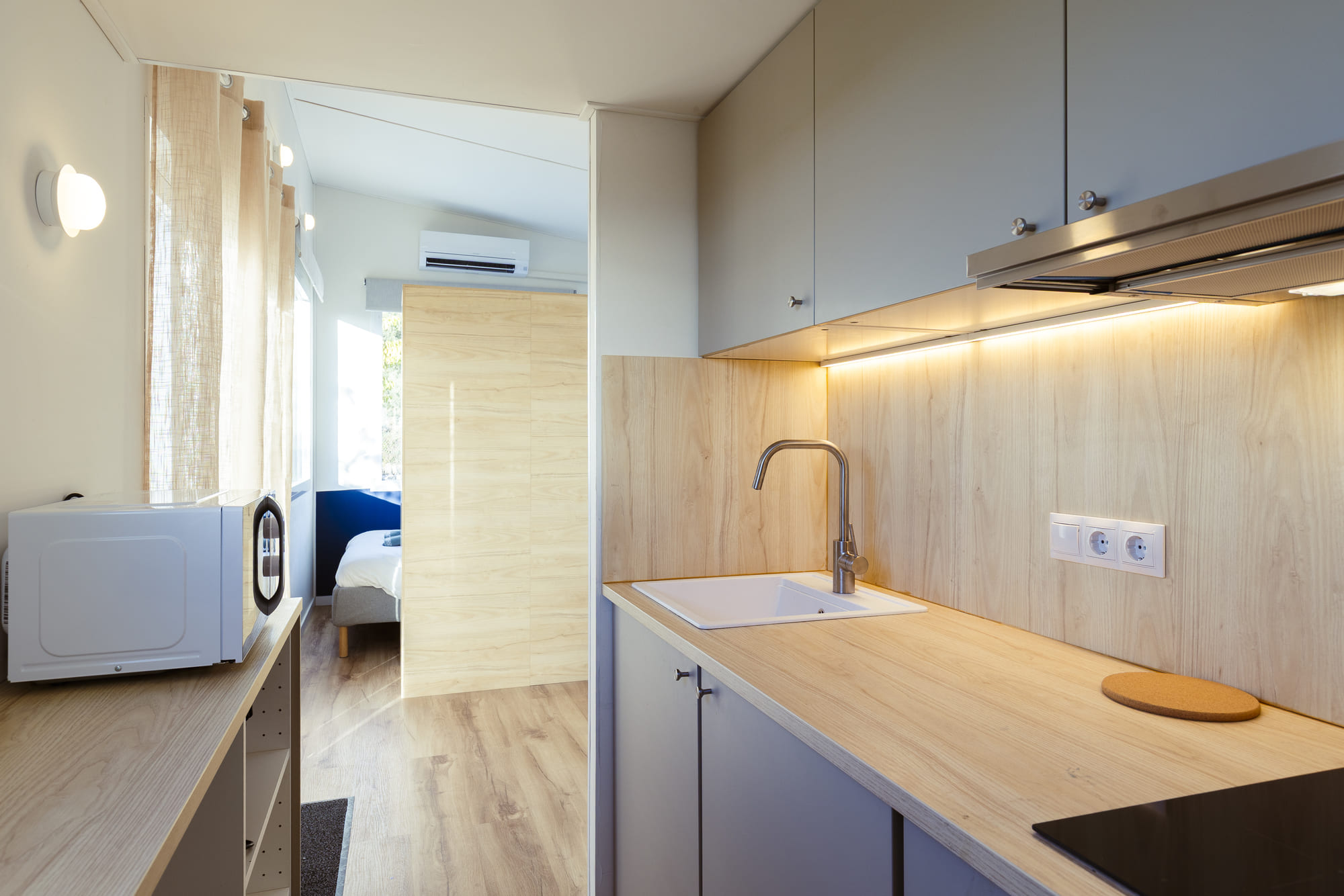 Totalmente equipadas, ofrecen todas las comodidades necesarias para una estancia acogedora: un refugio perfecto tras un día de actividades al aire libre. Su diseño aprovecha cada rincón, creando un ambiente moderno y agradable.